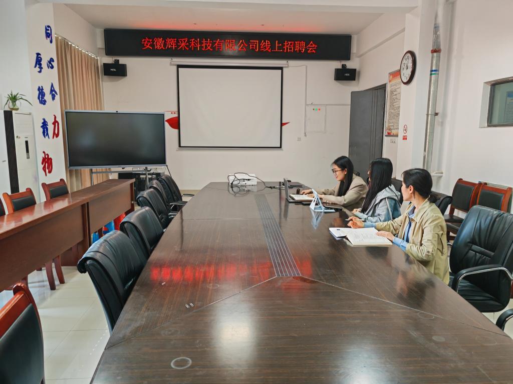 在明道楼会议室举行安徽辉采科技有限公司线上专场招聘会。会议由学生工作负责人主持,部分未就业的参加了招聘会。
