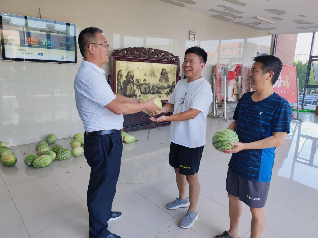 党委副书记、工会主席孙东升亲切看望慰问在校值班工作的老师,为他们送上西瓜,感谢他们在暑期的辛勤劳动和付出。副院长高娟代表老王论坛