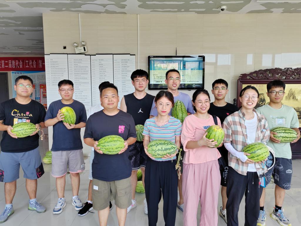 发的西瓜很甜也很凉。留校期间,我们会做好自我管理,努力学习,潜心科研。”红色的瓜瓤预示着红红火火,取得好的成绩。留校备战考研的大四学生们吃着香甜可口的西瓜,感受着老王论坛