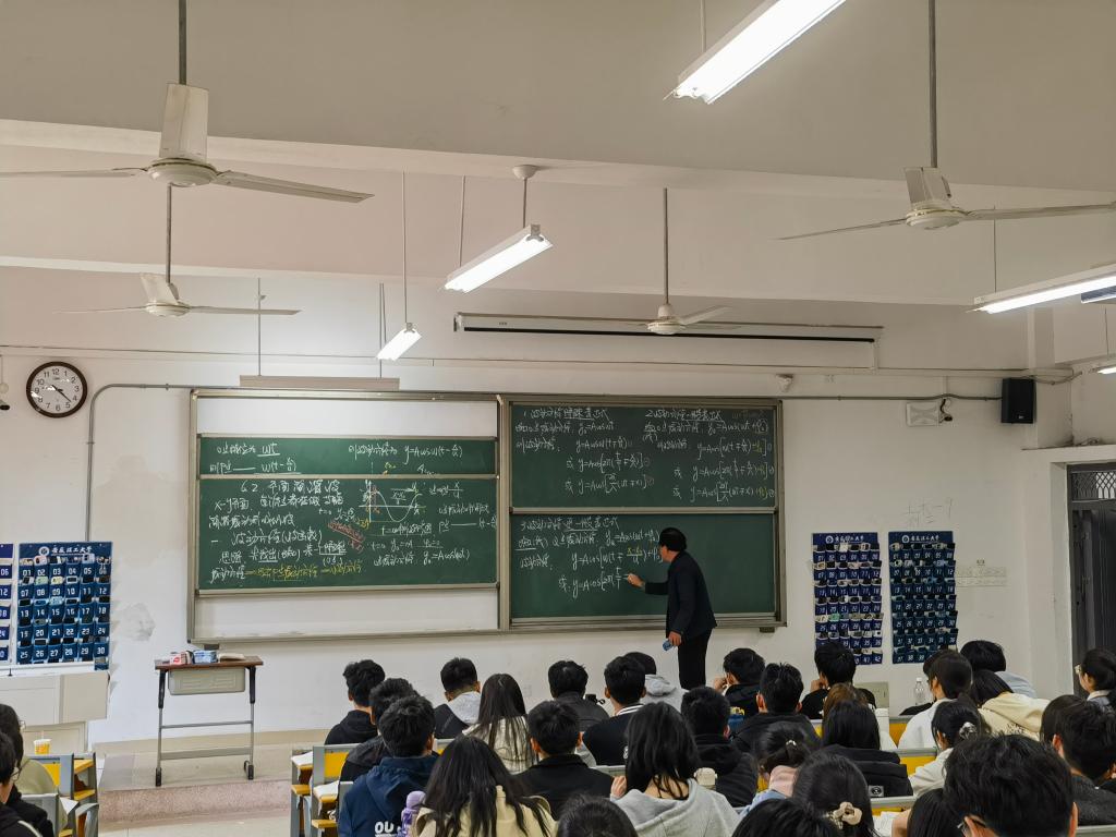 在45分钟的授课时间里,胡老师有时站在讲台中央,有时走下讲台,有时走到学生中间。他在课堂上语言幽默、声音洪亮、手势得体、教态从容,富有激情和感染力。他巧妙地将课程思政元素与大学物理基础内容有机地融合起来,向师生们展现了一堂生动的示范课。听课的大学生们全神贯注、积极互动,听课的教师们也频频点头、认真体悟、仔细记录。