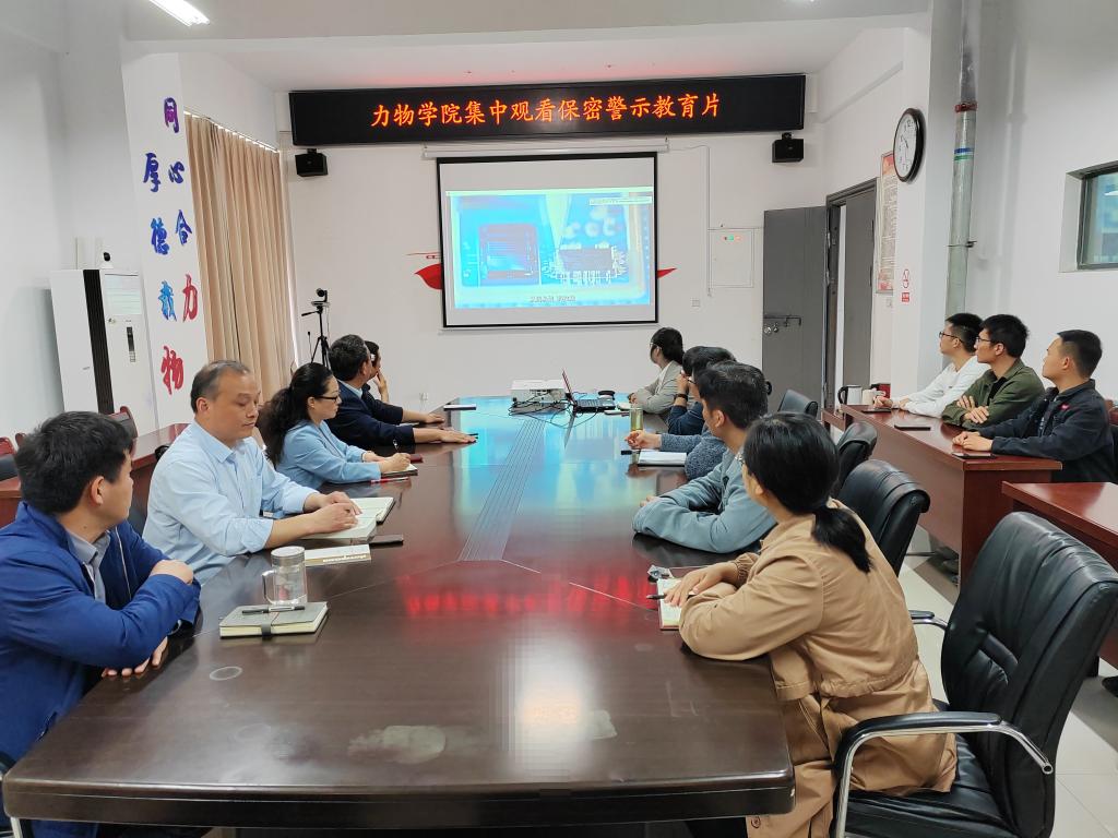 领导班子成员、党支部书记、辅导员、师生代表等在明道楼A320集中观看保密警示教育片。