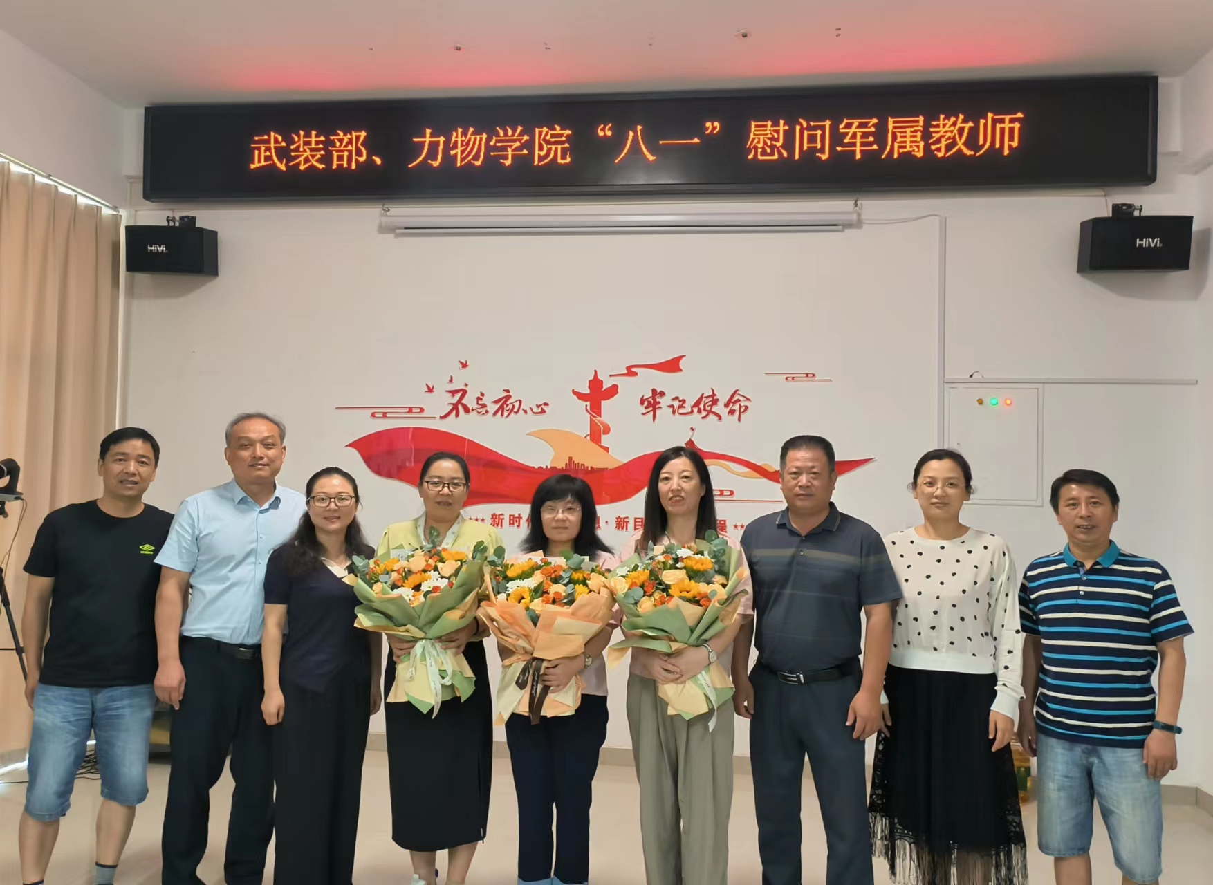 向各位军属教师送上鲜花并赠送了慰问品。