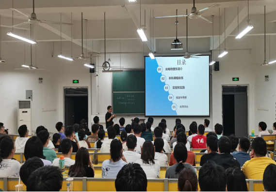 光电物理系主任李洋教授和2023级辅导员朱浩男在明理楼102教室为新生开展了专业规划及入学教育,旨在让同学们全面的了解专业知识,增强同学们对未来学习生活的自信。