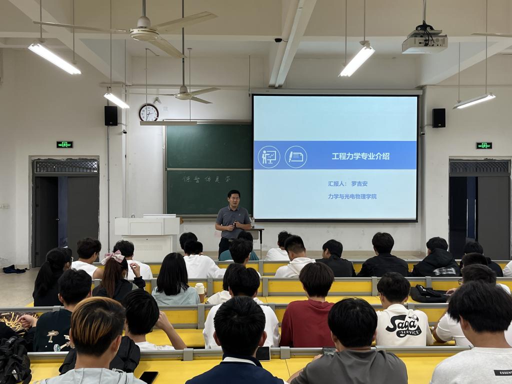 于9月22日下午在明理楼102教室举行了全体工程力学专业新生入学教育见面会,工程力学系主任罗吉安进行了主题报告。