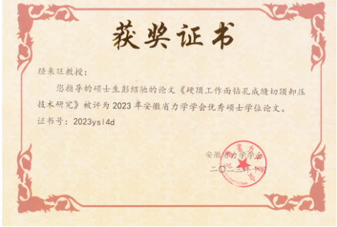 基础力学系教师冯彧雷颁发了2023年安徽省力学学会力学优秀教师奖,为2020级硕士研究生彭绍驰颁发了2023年安徽省力学学会优秀硕士学位论文奖,经来旺教授荣获优秀硕士学位论文指导教师奖。