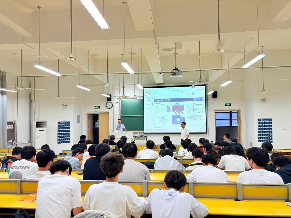 王兵以《航空航天领域复合材料力学问题分析》为题,重点讲解了碳纤维复合材料的多尺度力学分析方法及其在航空航天领域的创新应用,并通过现场互动,解答了导师和研究生们在科研中遇到的实际问题。
