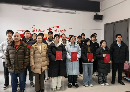 领导为首批物理拔尖班学生颁发了课程教材,并合影留念。